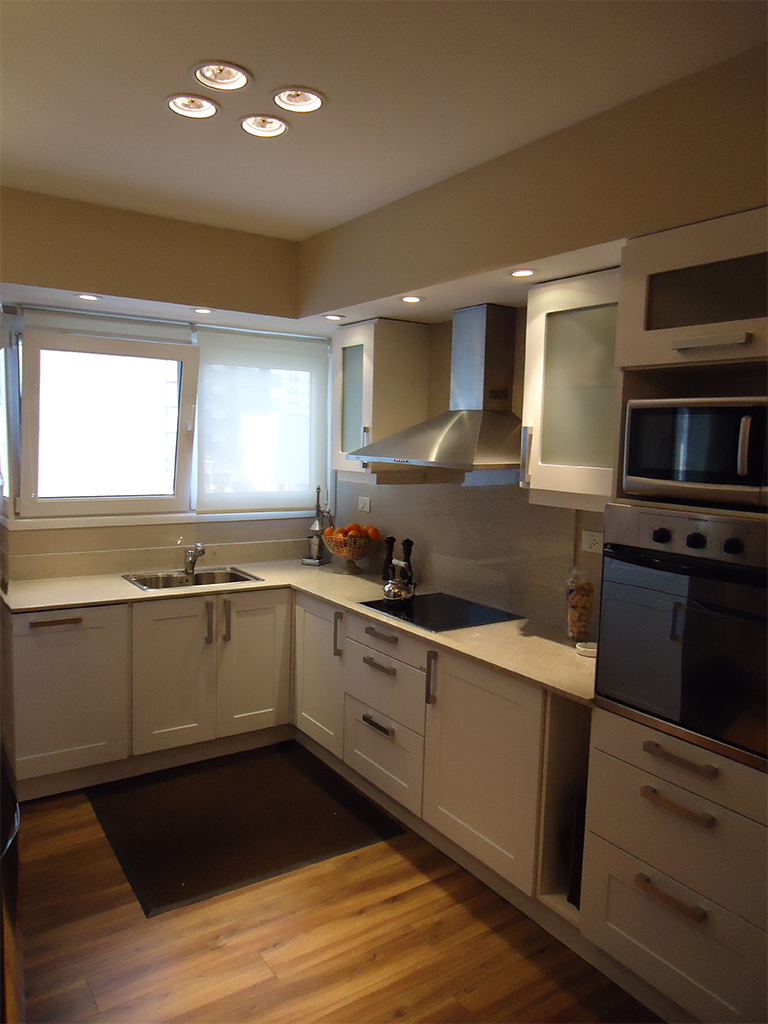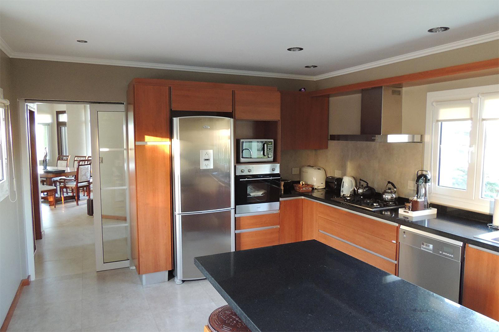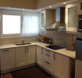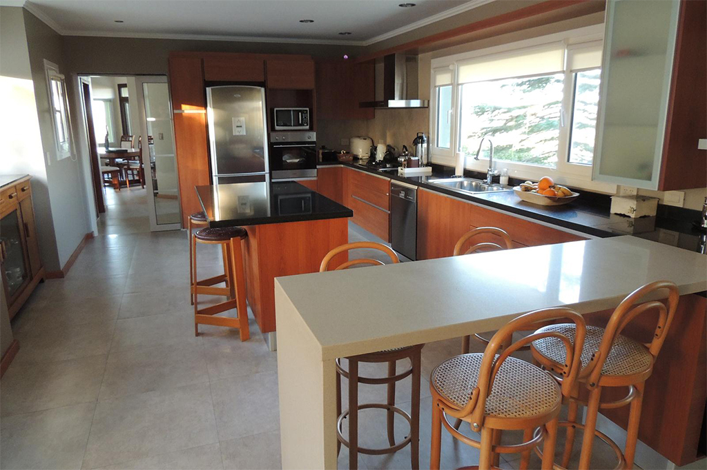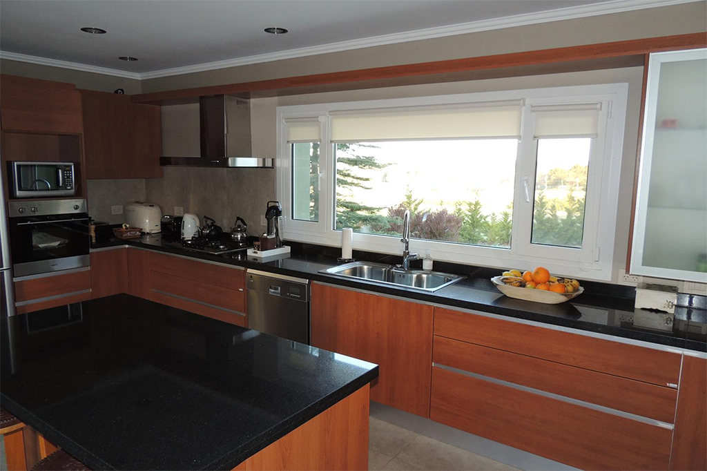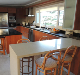 Línea Neutra PVC, Color Cerezo Barra desayunadora: Silestone Blanco Norte